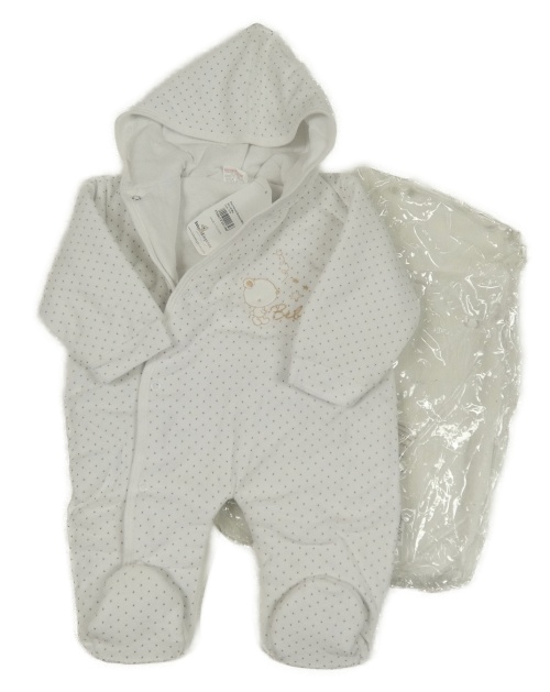 Nové - Biela zamatová zateplená kombinéza s medvedíkom a kapucňou Baby Elegance