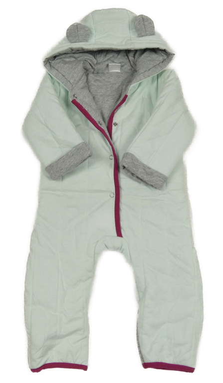 Mentolová prešívaná zateplená kombinéza s kapucňou s uškami