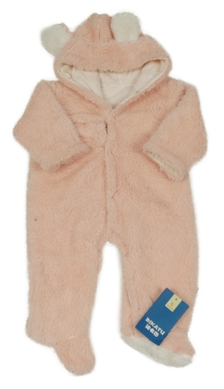Nové - svetloružová chlpatá podšitá kombinéza s kapucňou s uškami