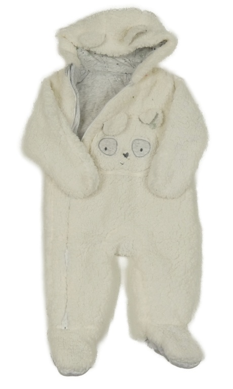 Biela huňatá podšitá kombinéza s pandou a kapucňou s uškami PRIMARK