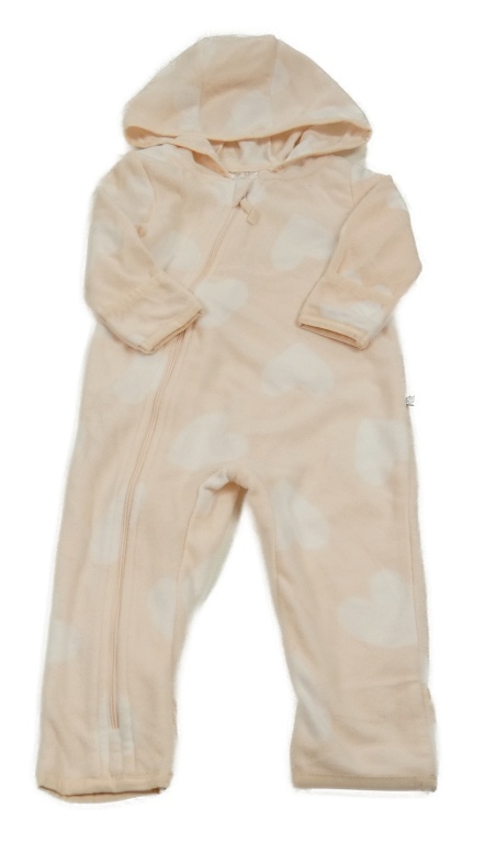 Svetloružová fleecová kombinéza so srdiečkami a kapucňou