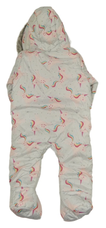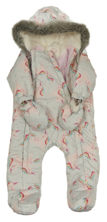 Svetlosivá melírovaná šušťáková zimná kombinéza s jednorožcami a kapucí + rukavice F&F