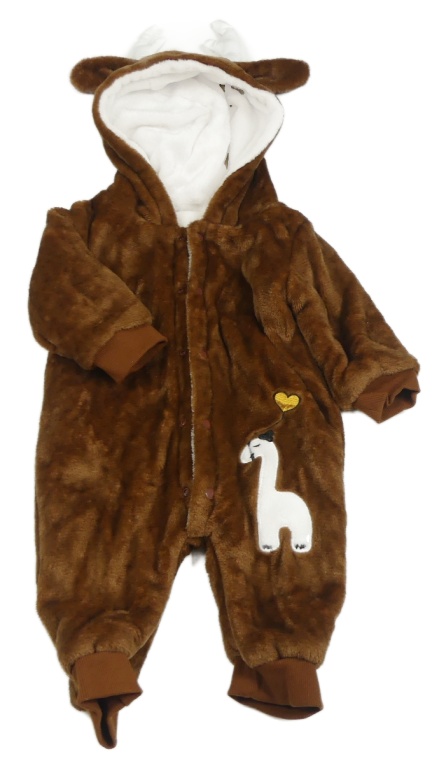 • Hnedá zateplená plyšová kombinéza s žirafou a kapucňou s rohy