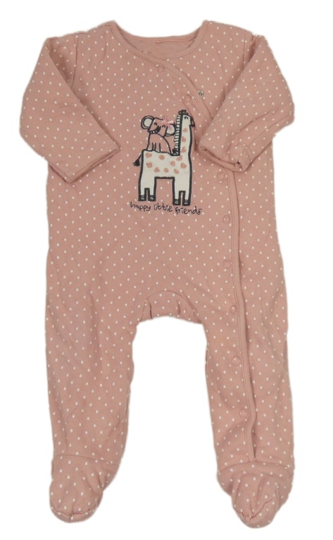 Pudrová bodkovaná á zateplená kombinéza so žirafou a sloníkem Nutmeg