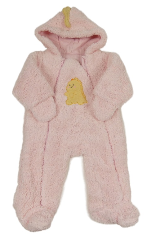 Svetloružová chlpatá zateplená kombinéza s dinem a kapucňou