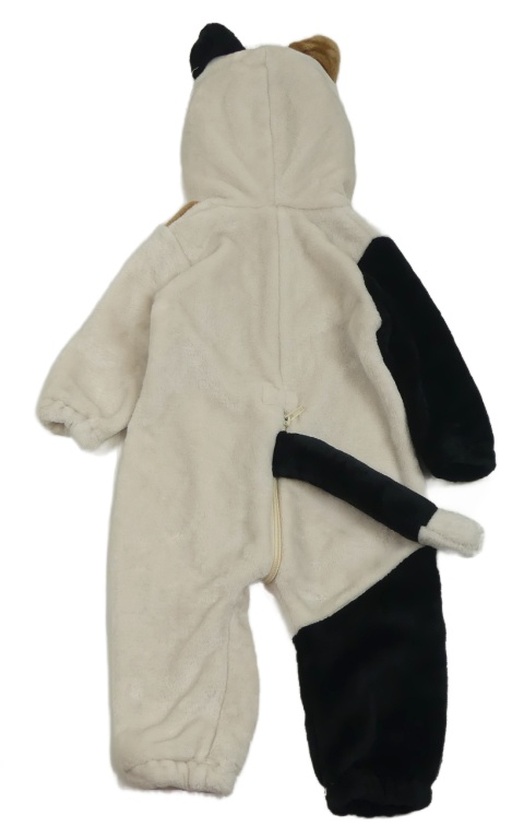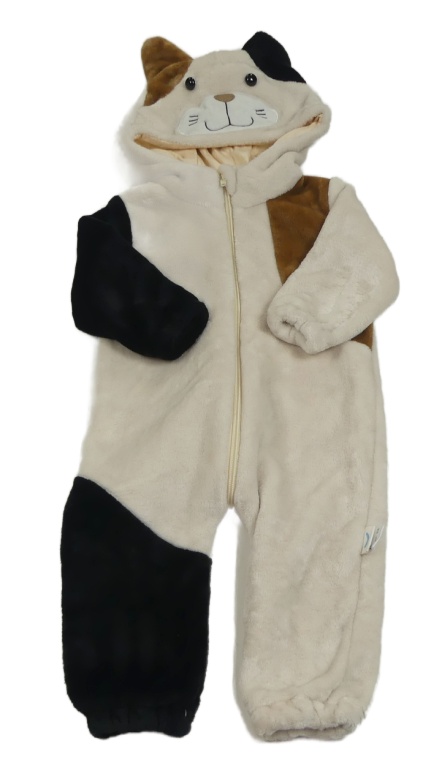 Světlebéžovo-hnedo-čierna chlpatá kombinéza s -kapucí mačka