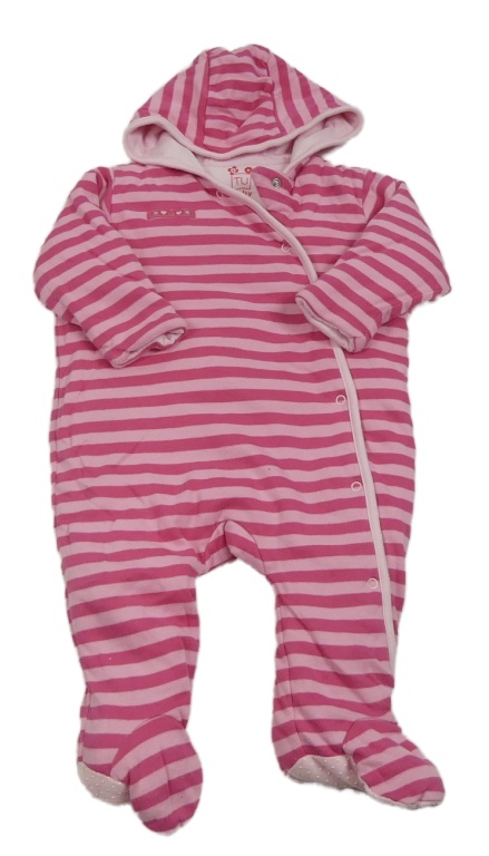 Ružová pruhovaná zateplená kombinéza s kapucňou TU
