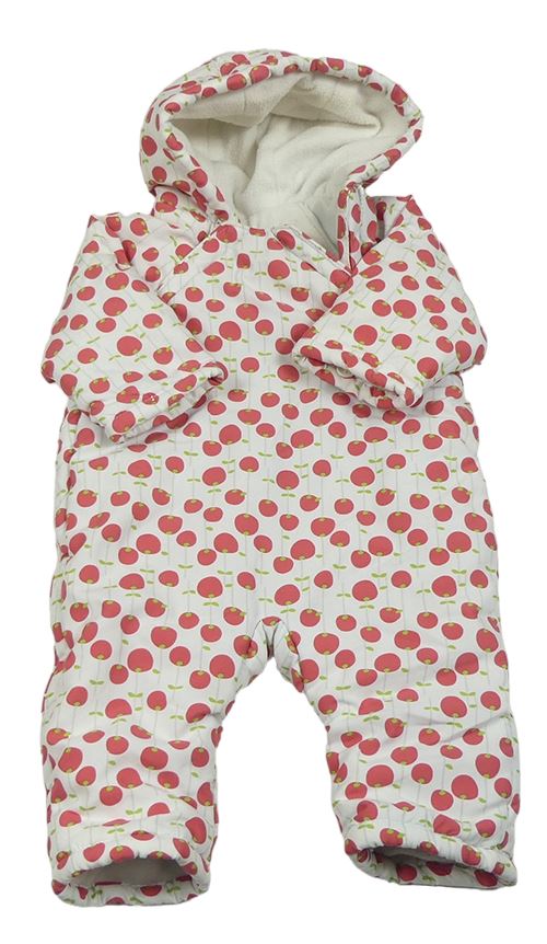 Biela šušťáková zimná kombinéza s jablíčky a kapucňou Mothercare