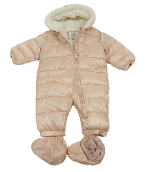 Svetloružová šušťáková zimná kombinéza s kapucí + cápačky M&S