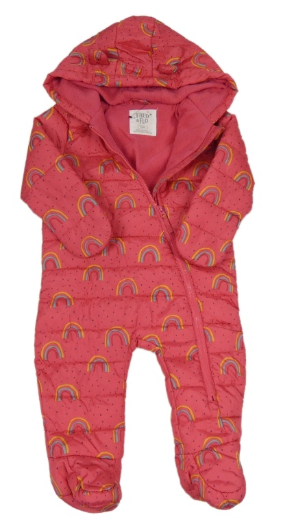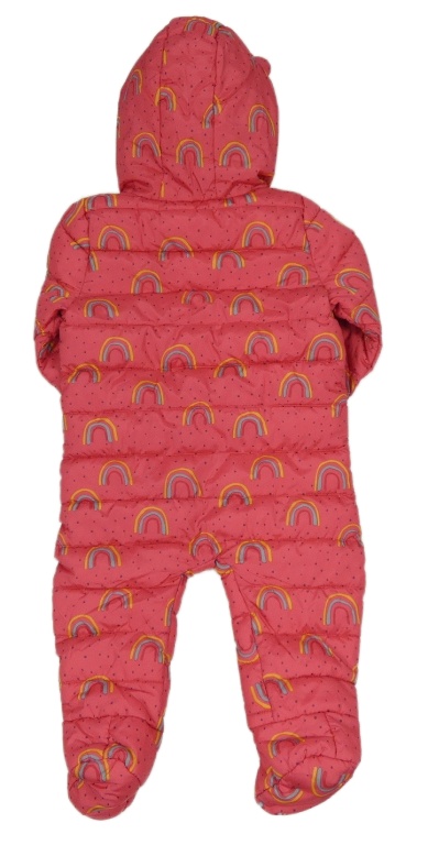 • Jahodová bodkovaná á prešívaná šušťáková zimná kombinéza s duhami a kapucňou s uškami F&F