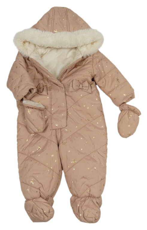 Staroružová šušťáková zimná kombinéza s hviezdičkami a kapucí + rukavice George