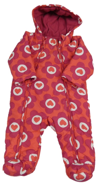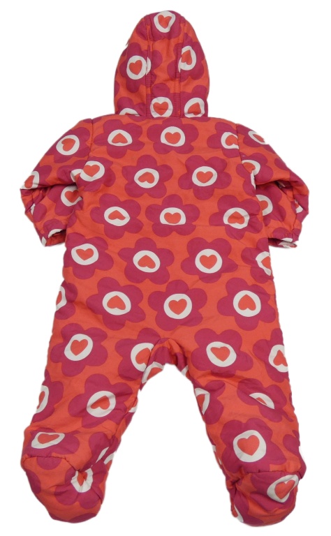Oranžovo-ružová kvetovaná šušťáková zimná kombinéza so srdiečkami a kapucňou M&S