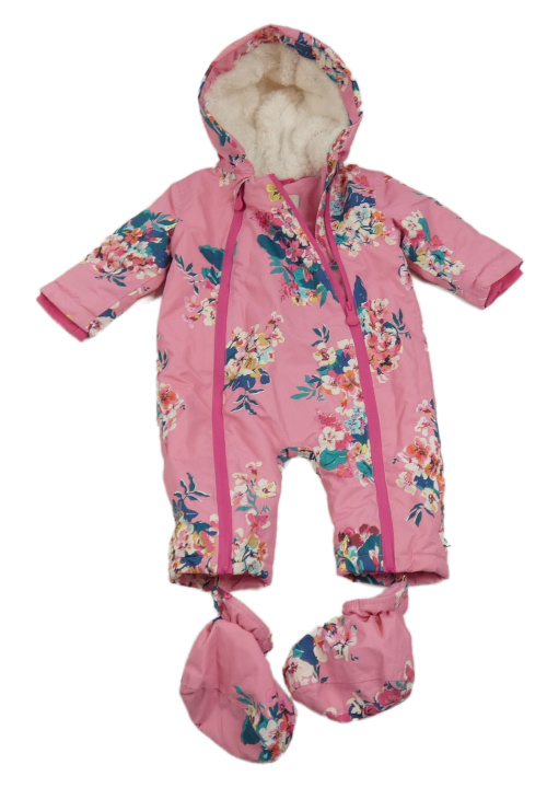 Ružová kvetovaná šušťáková zimná kombinéza s kapucí + topánky Joules