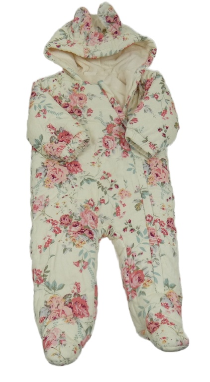 Smotanová menšestrová zimná kombinéza s kvietkami a kapucňou s uškami Next