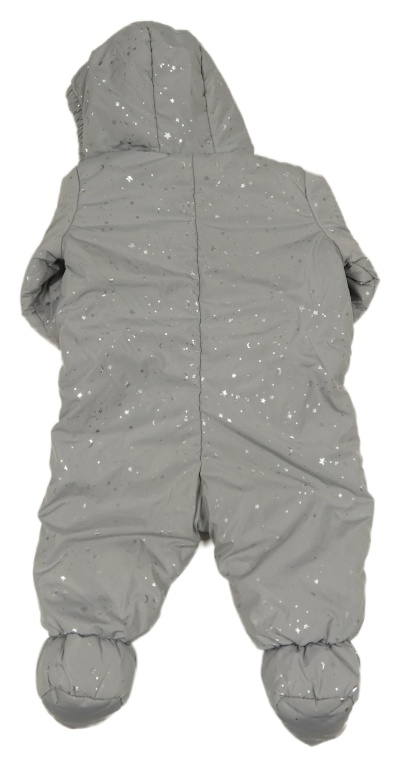 Sivá šušťáková zimná kombinéza s hviezdami a kapucí + rukavice C&A