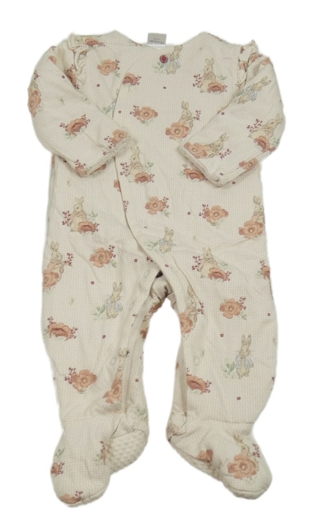 Smetanovo-pudrová bodkovaná á zateplená kombinéza s králíčky - Peter Rabbit a volánikmi Tu