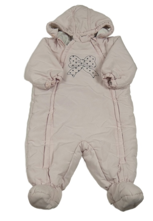 Svetloružová šušťáková zimná kombinéza s mašlou a kapucňou C&A