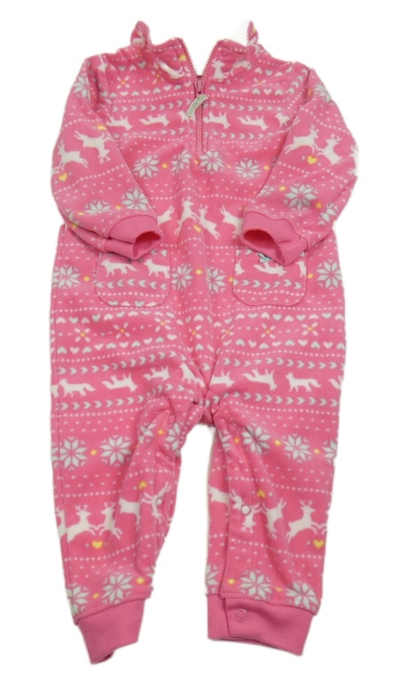 Ružová vzorovaná plyšová kombinéza so zvieratkami a vločkami carter's