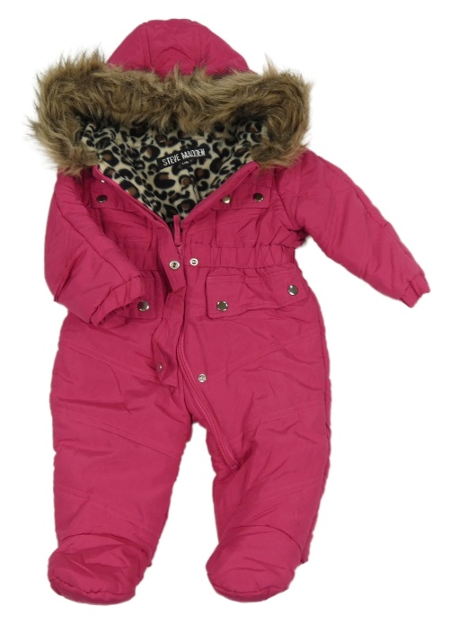 Tmavoružová prešívaná šušťáková zimná kombinéza s kapucňou s kožešinou STEVE MADDEN