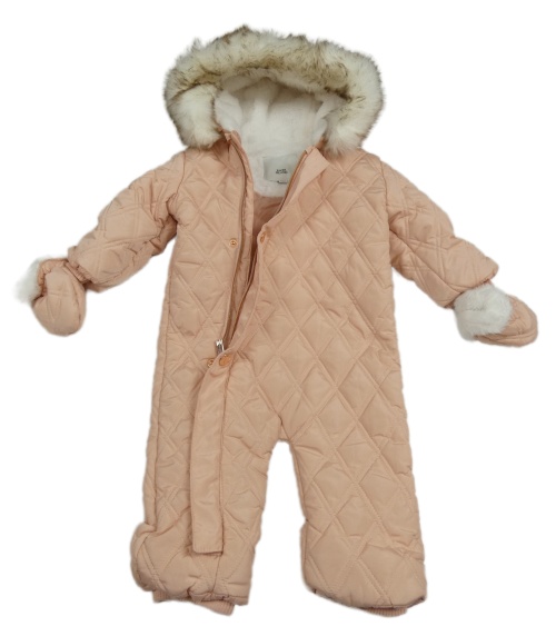 Svetloružová prešívaná šušťáková zimná kombinéza s kapucí + rukavice River Island