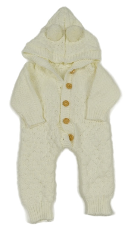 Smotanová pletená vzorovaná kombinéza s kapucňou