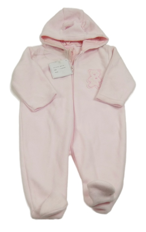Nové - Ružový fleecová kombinéza s medvěďom a kapucňou