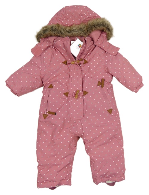 Nové - Staroružová bodkovaná á šušťáková zimná kombinéza s kapucňou Topomini