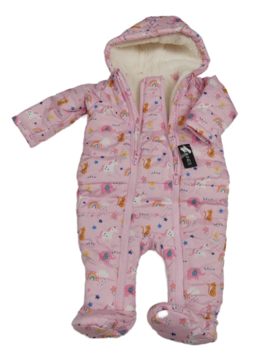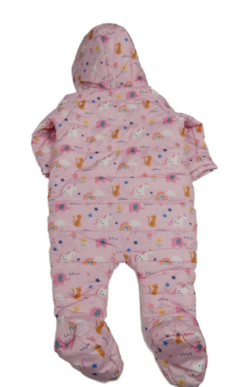• Nová - svetloružová prešívaná šušťáková zimná kombinéza so zvieratkami a kvietkami a duhami a kapucňou St. Bernard