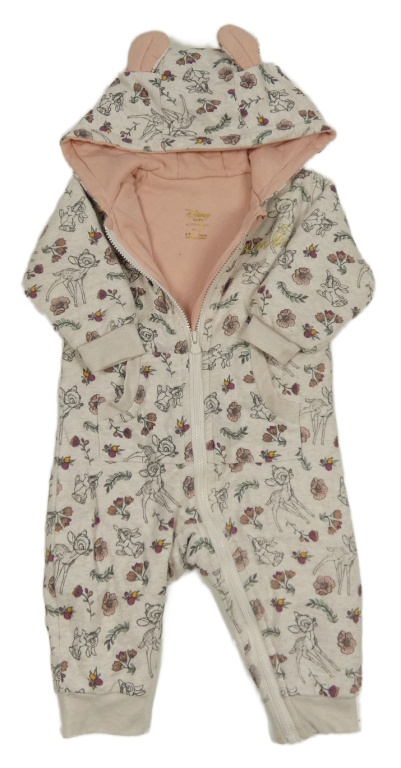 Svetlobéžová vzorovaná zateplená kombinéza s Bambim a kvetinami a kapucňou Primark