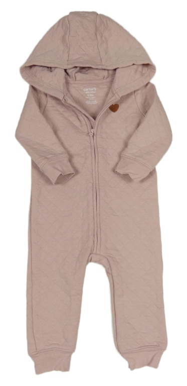 Pudrová prešívaná tepláková kombinéza so srdiečkom a kapucňou Carter's