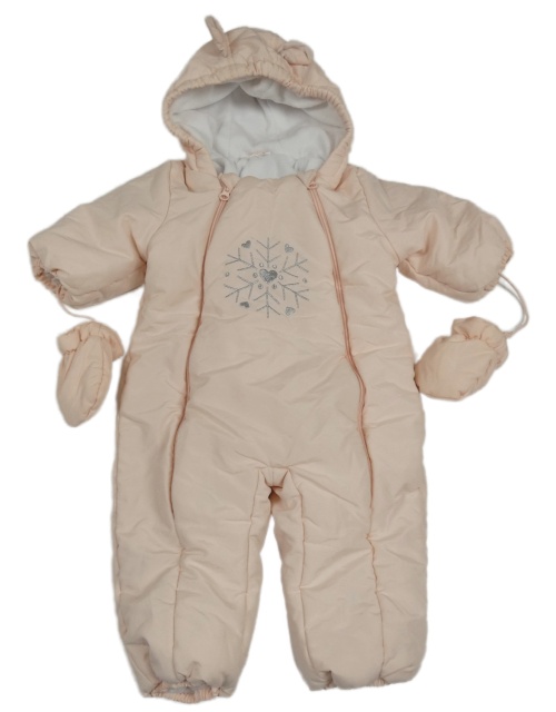 Svetloružová šušťáková zimná kombinéza s vločkou a kapucňou Ergee