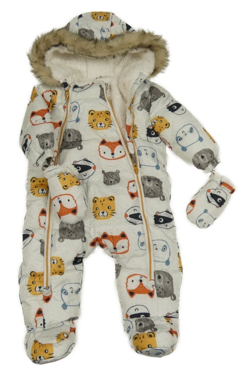 • Šedá melírovaná šusťáková zimní kominéza so zvieratkami a kapucí + rukavice F&F
