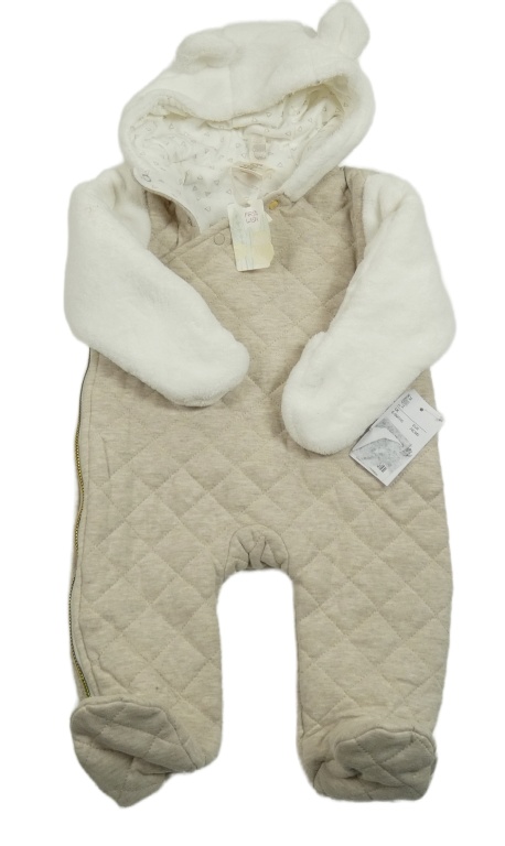 • Nové - Béžovo-biela teplákovo/chlupatá zateplená kombinéza s kapucňou