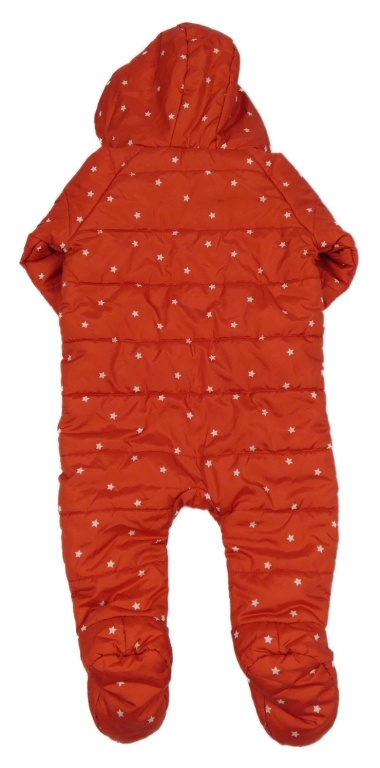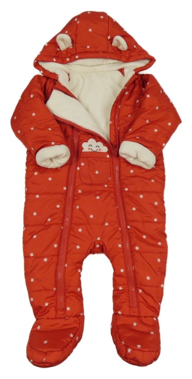 Červená šušťáková zimná kombinéza s hviezdami a kapucňou St. Bernard