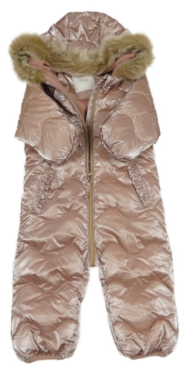 Ružová šušťáková lesklá prešívaná zimná kombinéza s kapucňou s kožešinou Next