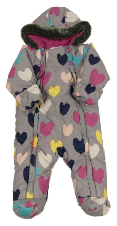 Sivá šušťáková zimná kombinéza so srdiečkami a kapucňou M&S