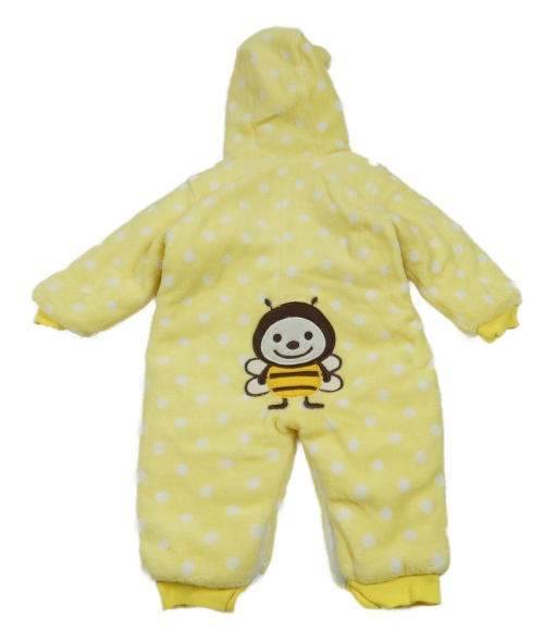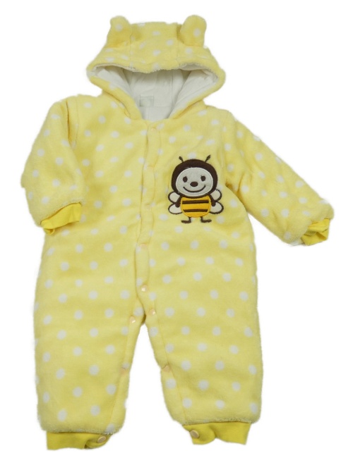Žltá chlpatá bodkovaná á zateplená kombinéza s vosou a kapucňou