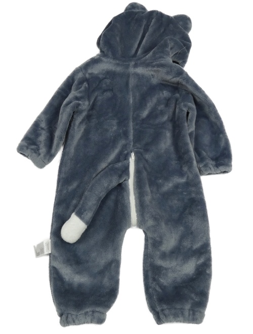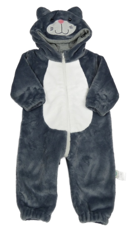 Tmavošedo-biela plyšová kombinéza s kapucí - mačička