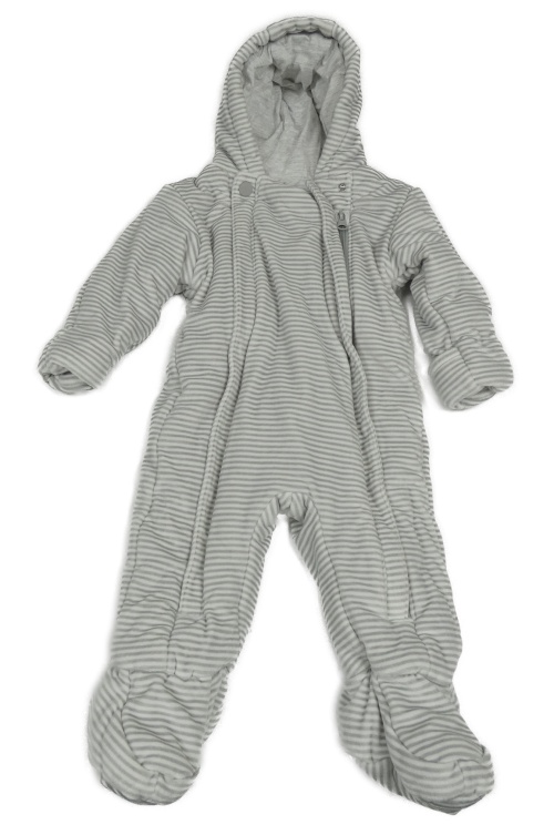 Sivo-biela pruhovaná zamatová zateplená kombinéza s kapucňou M&S