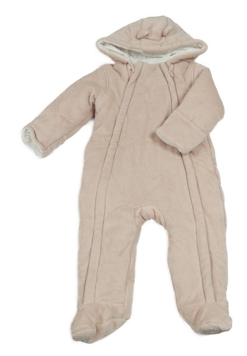 Svetloružová rebrovaná zamatová zateplená kombinéza s kapucňou George