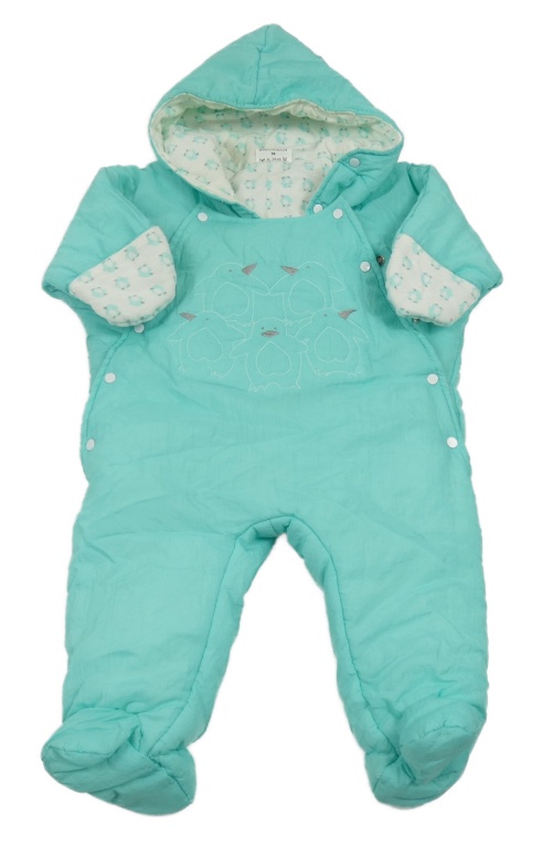 • Tyrkysová šušťáková zimná kombinéza s tučňáky a kapucňou