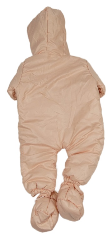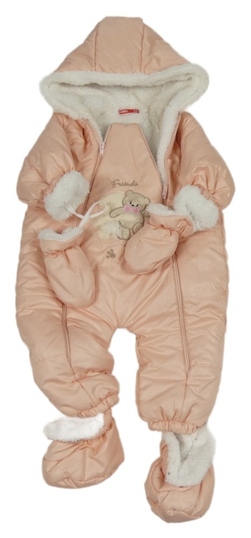 Svetloružová šušťáková zimná kombinéza s medvedíkmi a kapucňou