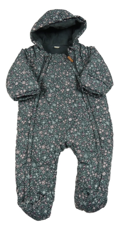 Tmavosivá prešívaná šušťáková zimná kombinéza s kvietkami a kapucňou H&M