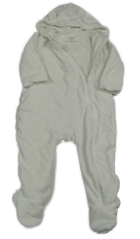 • Biela zamatová zateplená kombinéza s medvedíkmi a kapucňou s uškami MANOR
