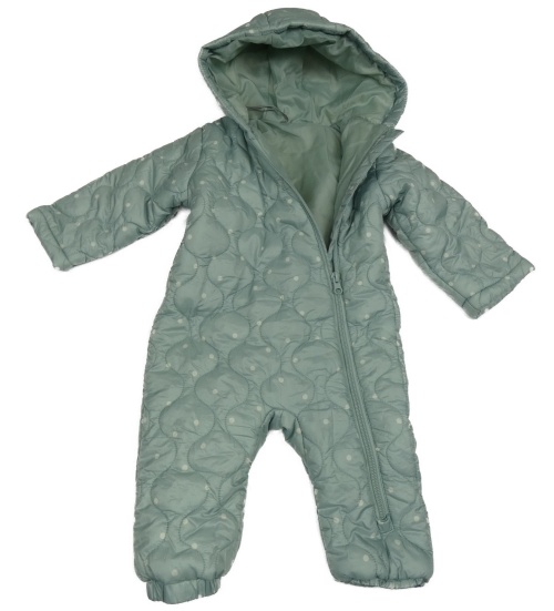 Zelenošedá šušťáková prešívaná zimná kombinéza s bodkami a kapucňou Tu