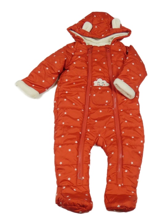 Červená šušťáková zimná kombinéza s hviezdičkami a kapucňou St. Bernard