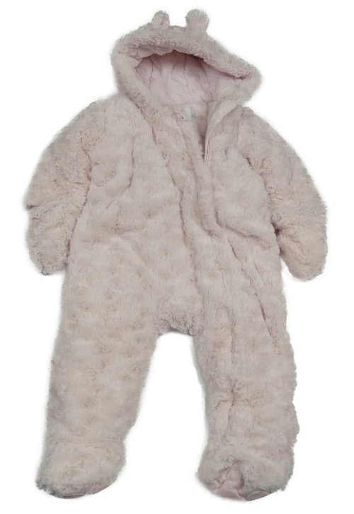 Svetloružová kožušinová zateplená kombinéza s kapucňou Miniclub
