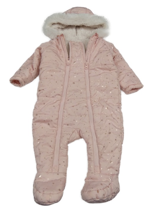 Svetloružová šušťáková zimná kombinéza s hviezdičkami a kapucňou St. Bernard
