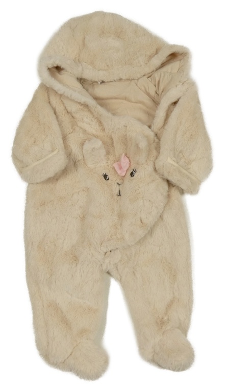 Svetlobéžová chlpatá podšitá kombinéza s ňufáčikom a kapucňou