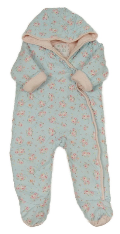 Světlemodro-ružová kvetovaná zateplená kombinéza s kapucňou Miniclub